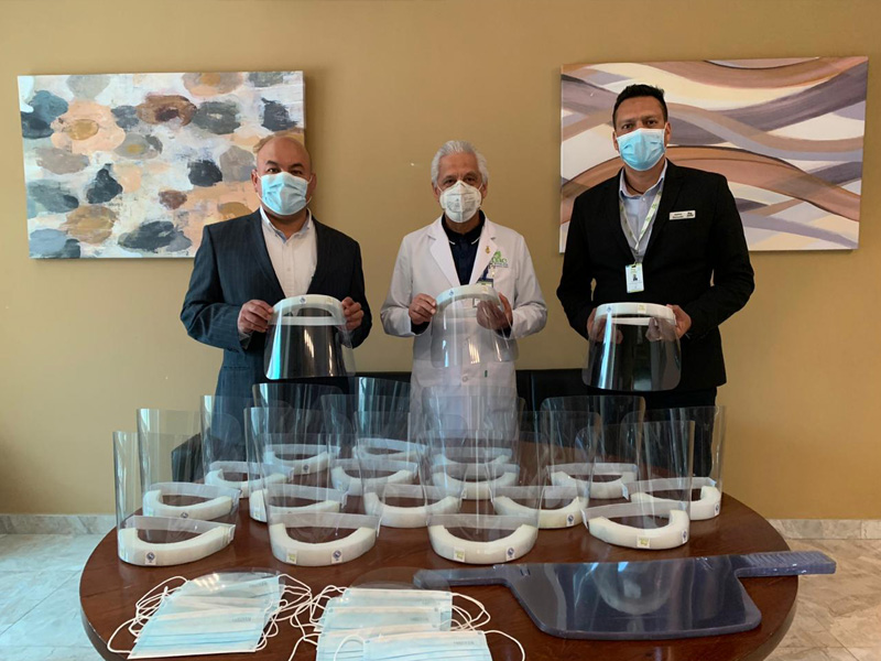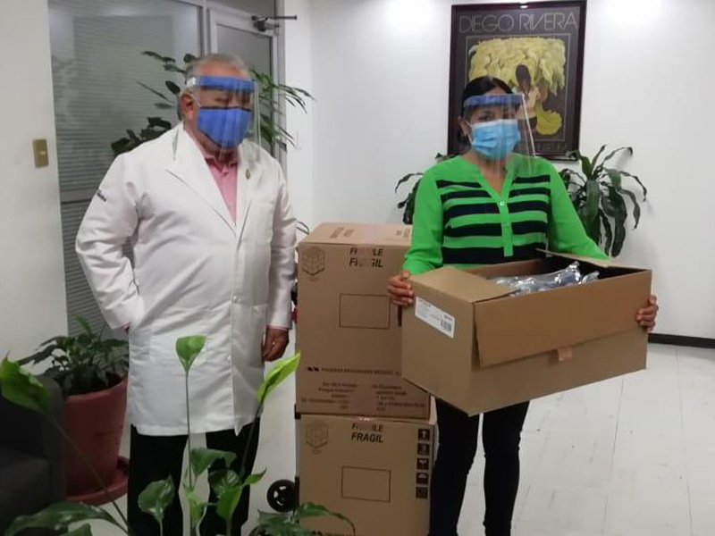 Entrega como donativo al Hospital Mac de Puebla. 100 caretas faciales. Presidente Acad. Roberto Guillermo Calva y Rodriguez